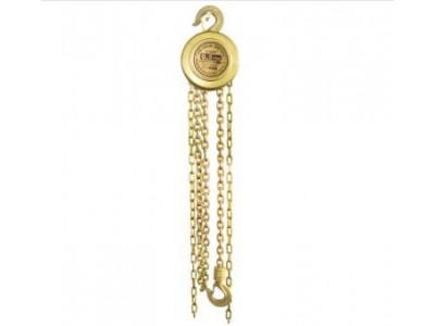防爆手拉葫芦的优点体现在材质与结构两方面。其关键部件如链条、齿轮、吊钩等,多采用铝青铜或铍青铜合金制成。铝青铜合金含铝量约10%-15%,兼具良好韧性与抗火花性能;铍青铜合金含铍1.8%-2.2%,强度愈高,适合承受大载荷。这些合金材质在相互摩擦或与其他金属碰撞时,产生的火花能量远低于可燃气体的小点火能量,例如与碳钢接触时火花能量通常低于0.2mJ,可达到甲烷、丙烷等常见可燃气体环境的稳定要求。此外,设备的传动结构经过特别处理,避免部件间因咬合不当产生摩擦火花,制动系统采用无火花材质,启停过程稳定稳定。