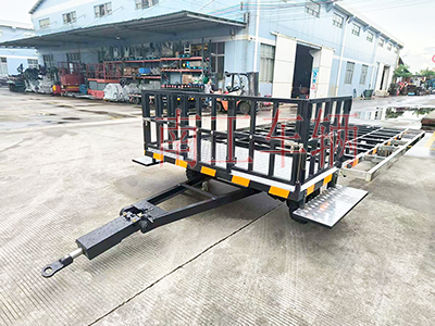 2、底盘结构为骨架式,有效承载面尺寸长5.4米,宽2.2米,前部高度0.78-0.79米,后部高度0.78-0.83米。牵引架展开全长6700mmm,收起全车5685mm。